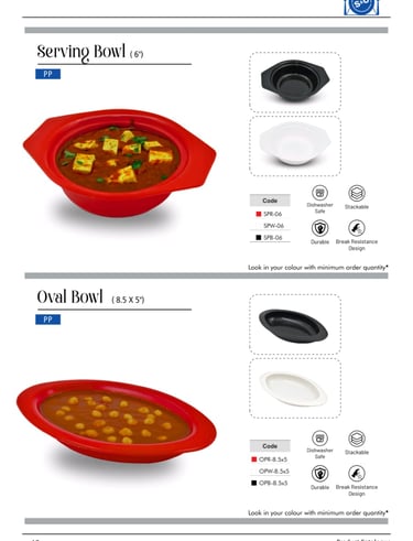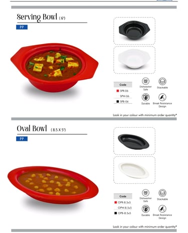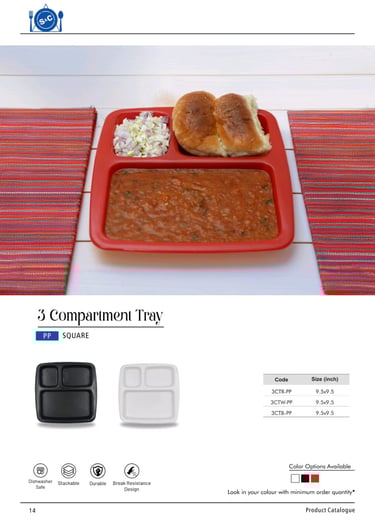 Our extensive product range includes Plates, Thali Sets, Bowls, Tableware, Compartment Plates, Glasses, and Cafeteria Trays — all engineered to meet global standards of safety, design, and durability. Each product is foodgrade, unbreakable, stain-resistant, and microwave safe, offering unmatched ulity and long life.
